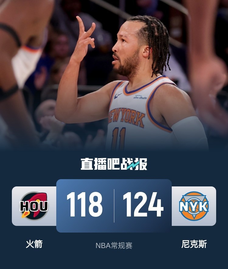 布伦森42+10 阿门三双 尼克斯末节轰46分逆转送火箭三连败