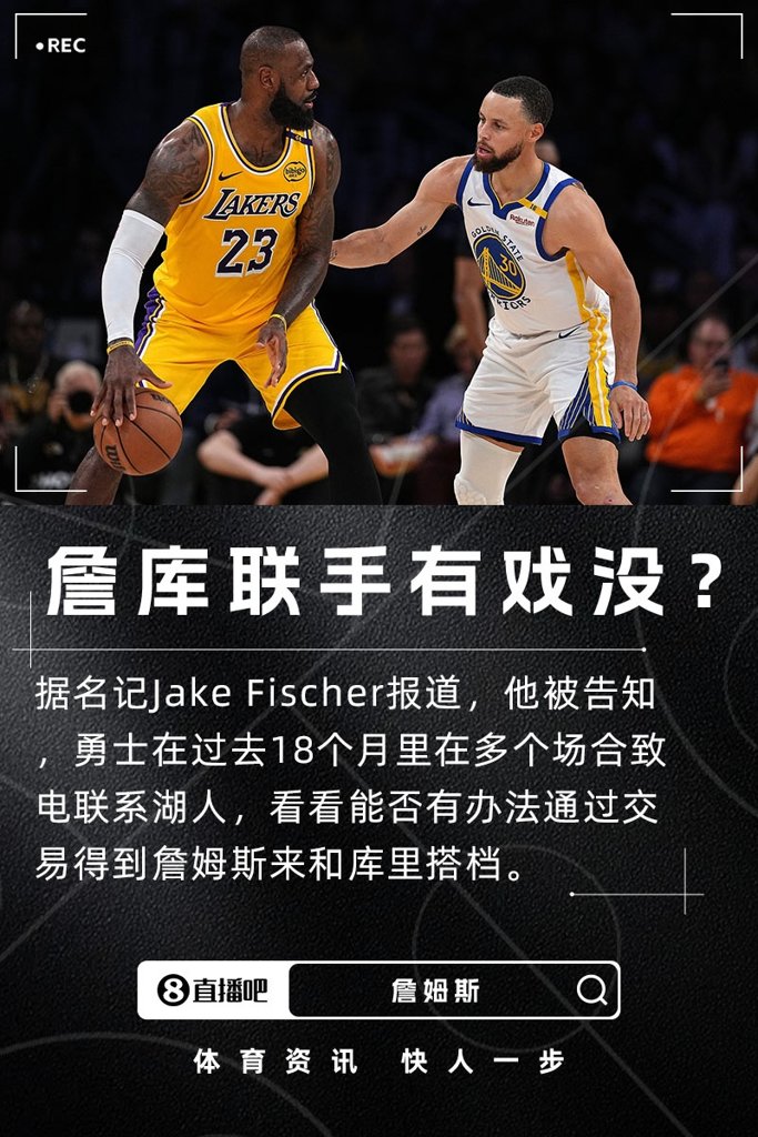08月23日讯 据名记Jake Fischer报道,他被告知,勇士在过去18个月里在多个场合致电联系湖人,看看能否有办法通过交易得到詹姆斯来和库里搭档。
