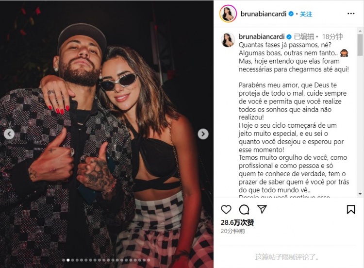 内马尔33岁生日,女友社媒发文:愿上帝保佑你远离邪恶,实现梦想