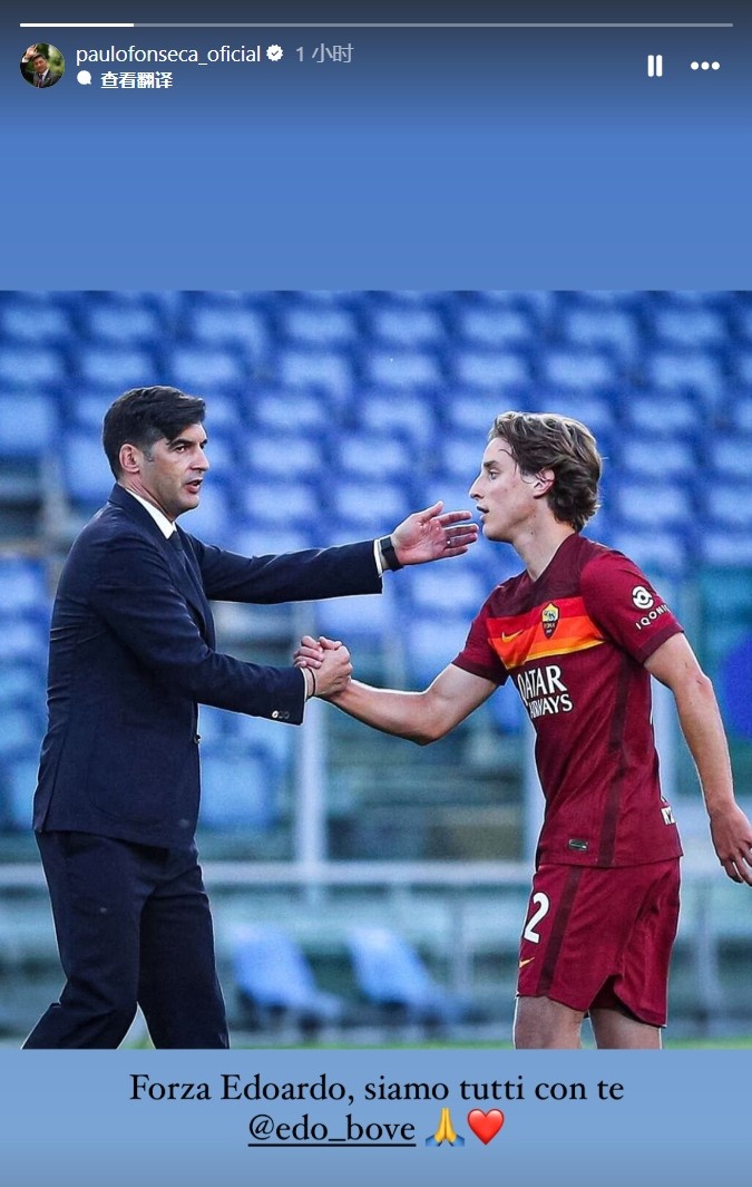 丰塞卡晒出自己和博维罗马时期的合照,并配文:加油,爱德华多,我们都与你在一起。