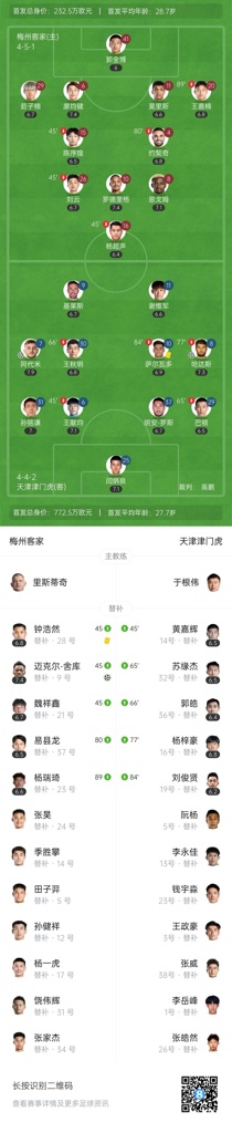 全场比赛结束,津门虎2-1战胜梅州客家。