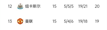 纽卡本赛季对阵big6战绩: